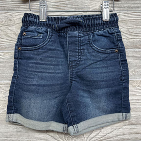 Drawstring Knit Denim Shorts Cuffed