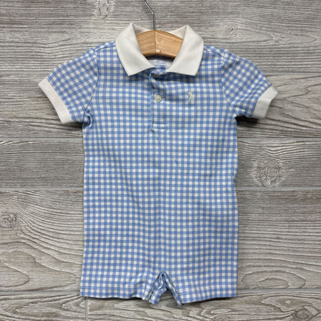 Gingham Polo Shorty Romper Embroidered Logo 6m