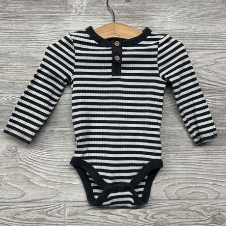 LS Ribbed Henley Bodysuit Stripes 6-9m