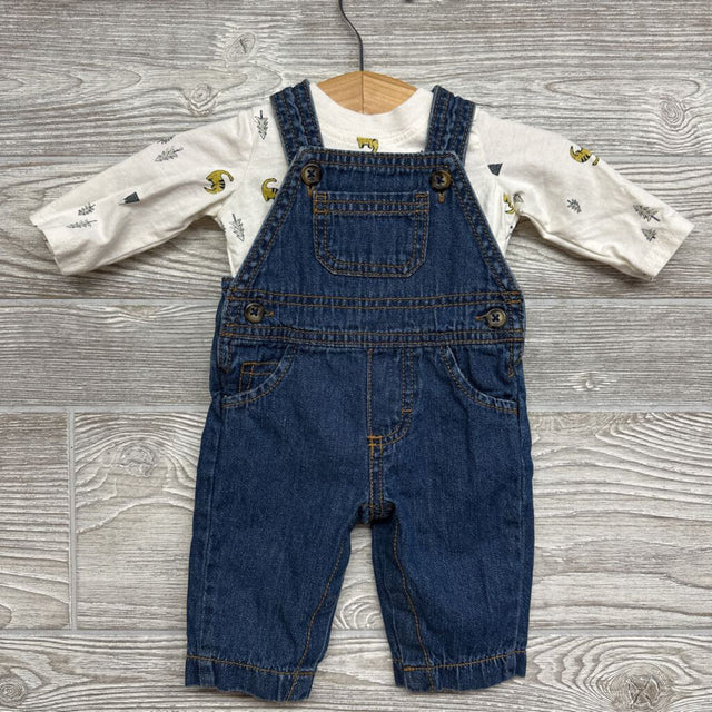 Denim Overalls & LS Shirt Dinosaurs Trees nb