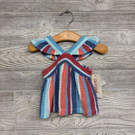 NEW 1 Pc Striped Twill Tank Top Ruffle Straps