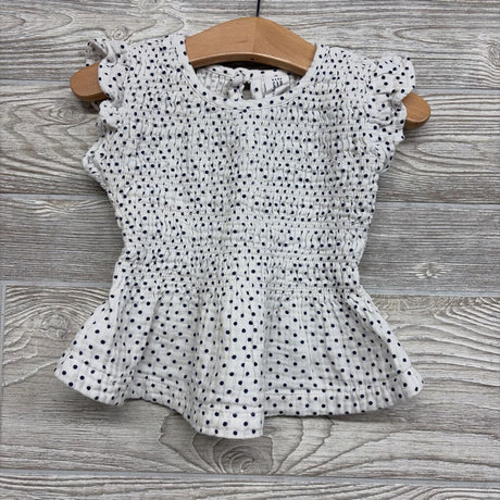 Smocked Peplum Shirt Ruffle Shoulder Dots