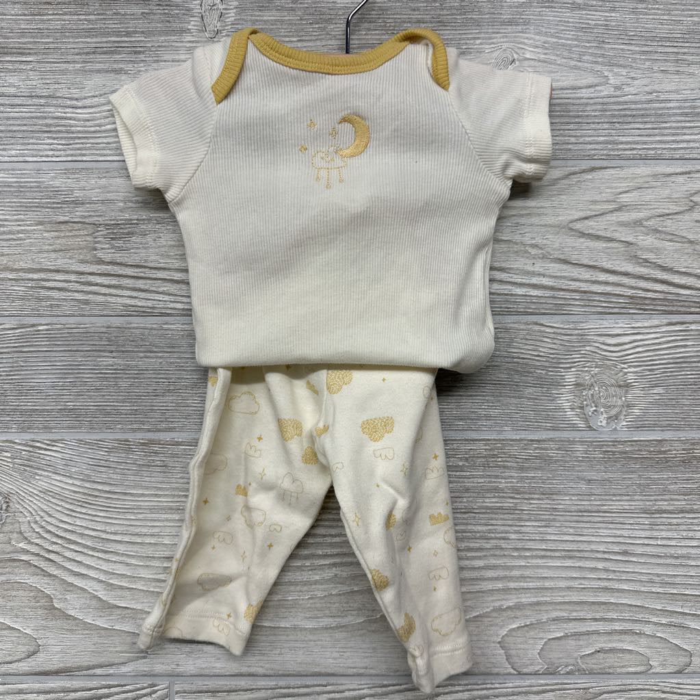 3 Pc Button Up Outfit & Ribbed Shirt & Pants Clouds 9M