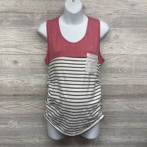 Ruched Tank Top Stripes Lace Pocket