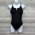 Ruched Ribbed 1/4 Button Swimsuit