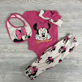 2 Pc Bodysuit & Footed Pants W/ Headwrap & Bib Minnie Mouse
