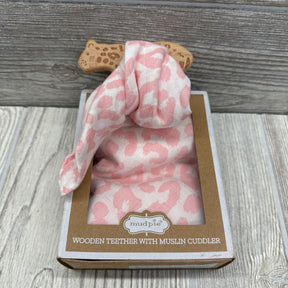 NEW Wooden Teether W/ Muslin Cuddler Animal Print
